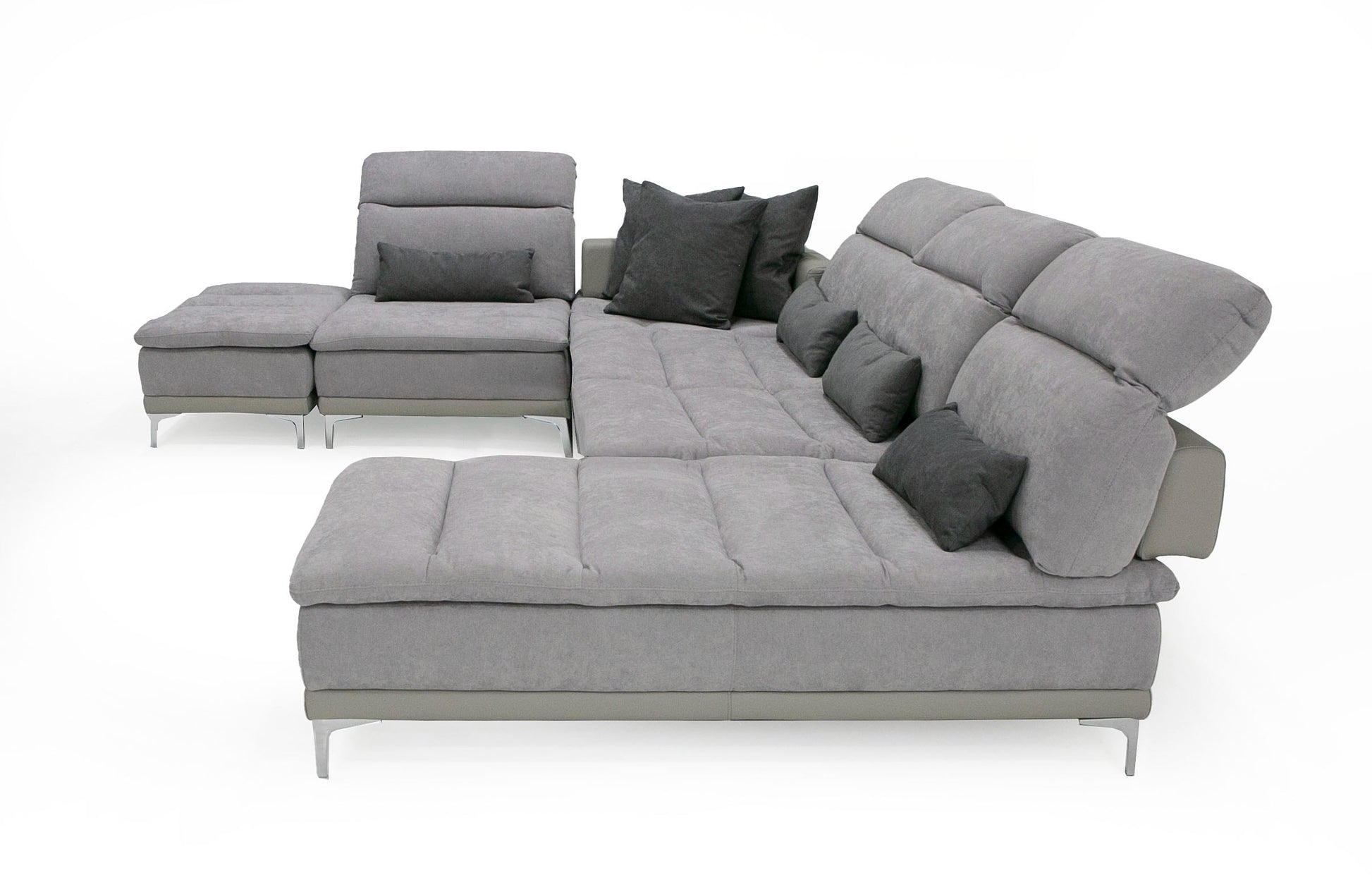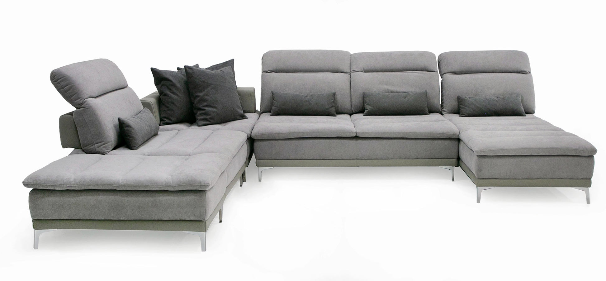 David Ferrari Horizon - Modern Grey Fabric + Grey Leather U Shaped Sectional Sofa