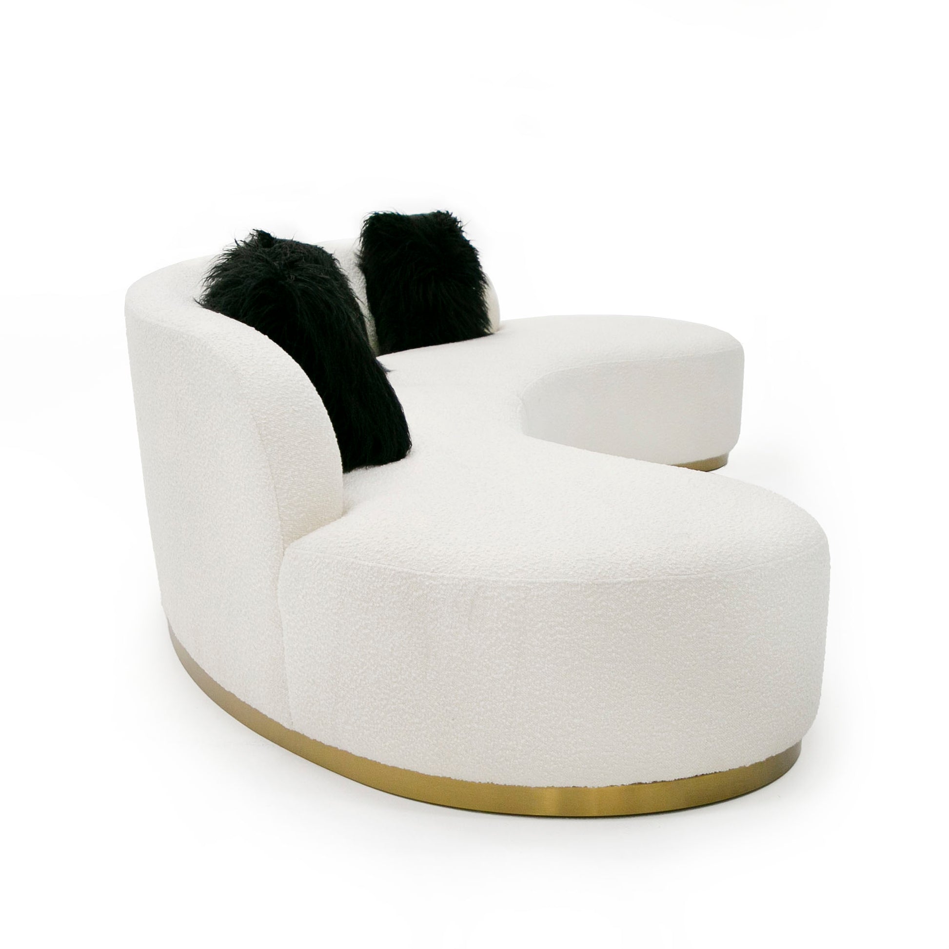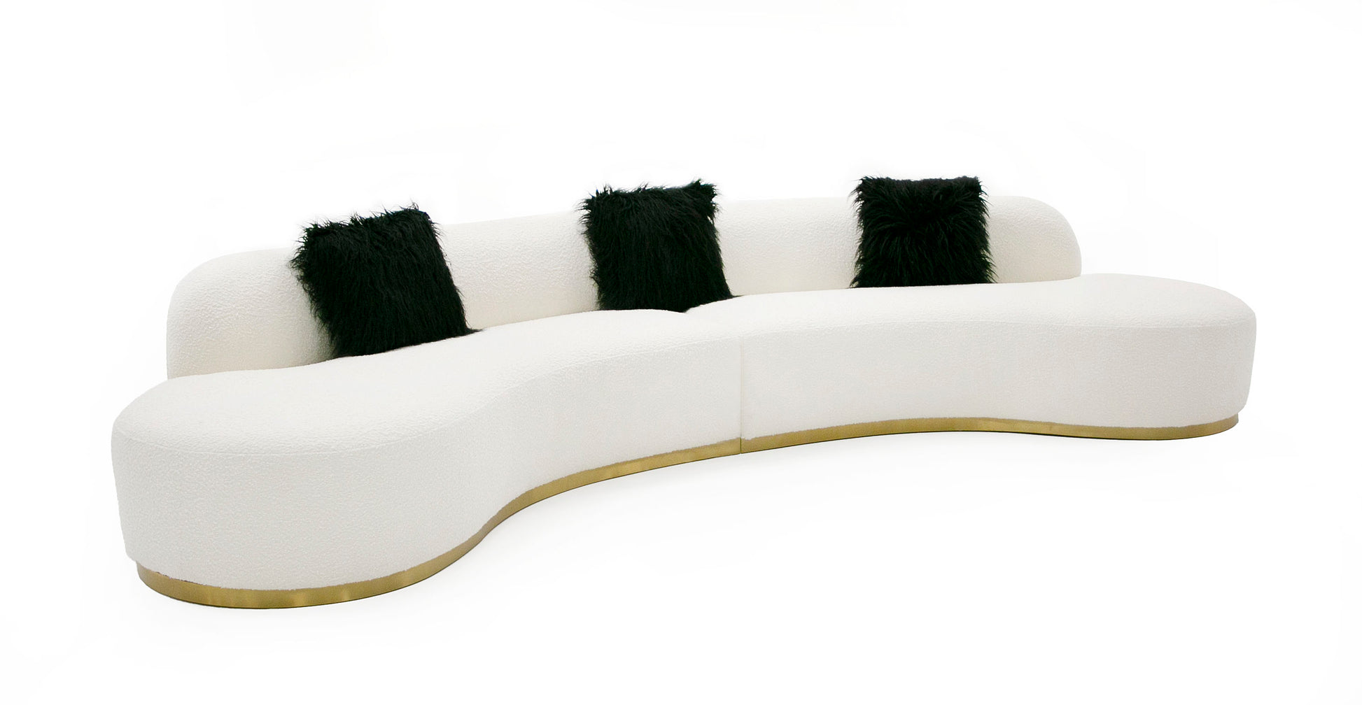 Divani Casa Frontier - Glam Off-White Fabric Curved Sectional Sofa with Black Pillows