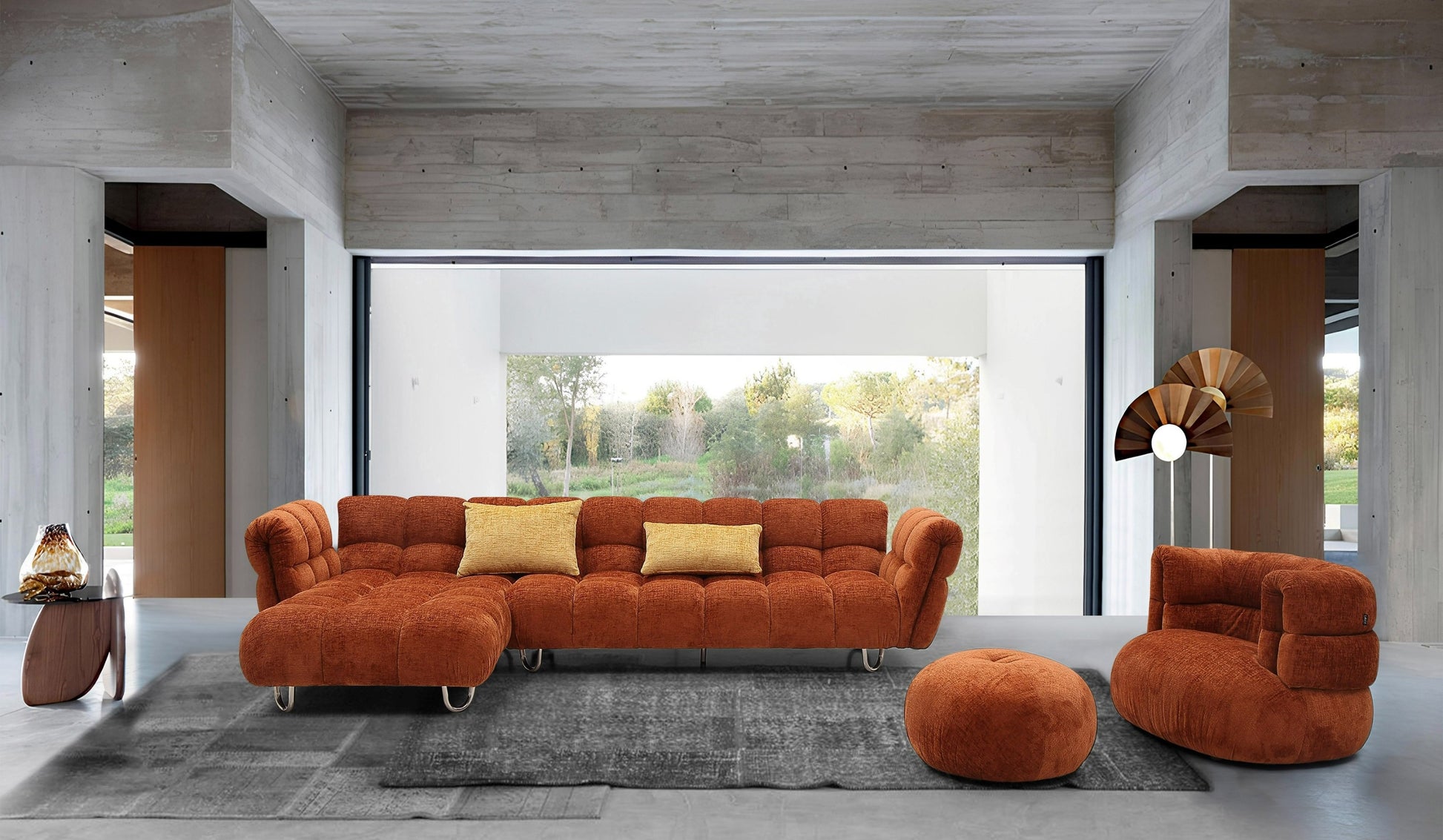 Divani Casa Jacinda - Modern Burnt Orange Fabric Left Facing Sectional Sofa + 2 Yellow Pillows