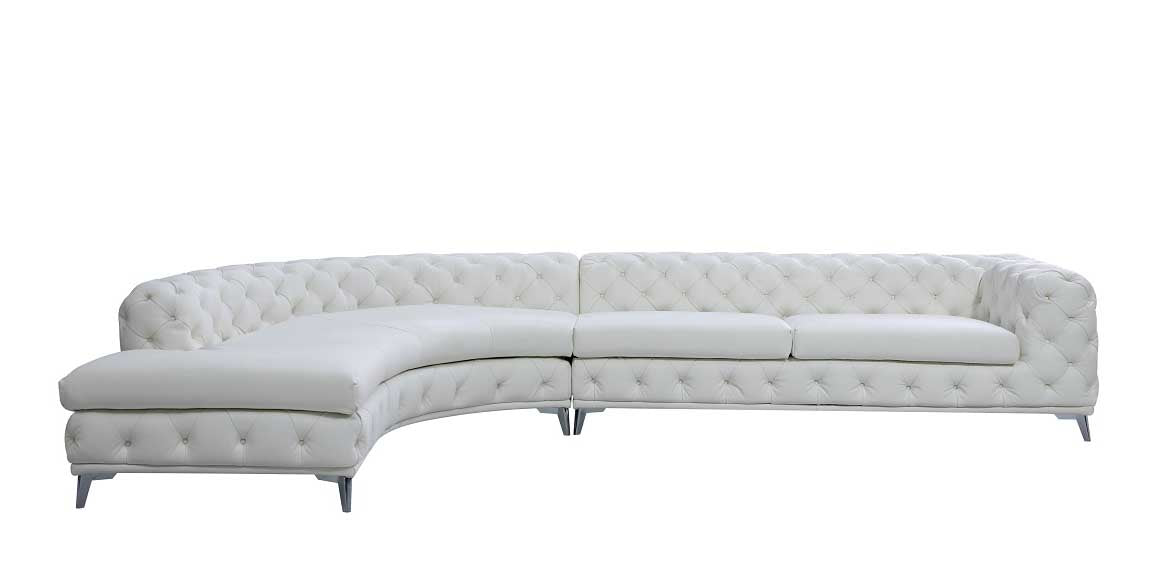DIvani Casa Kohl - Contemporary White LAF Curved Shape Sectional Sofa w/ Chaise