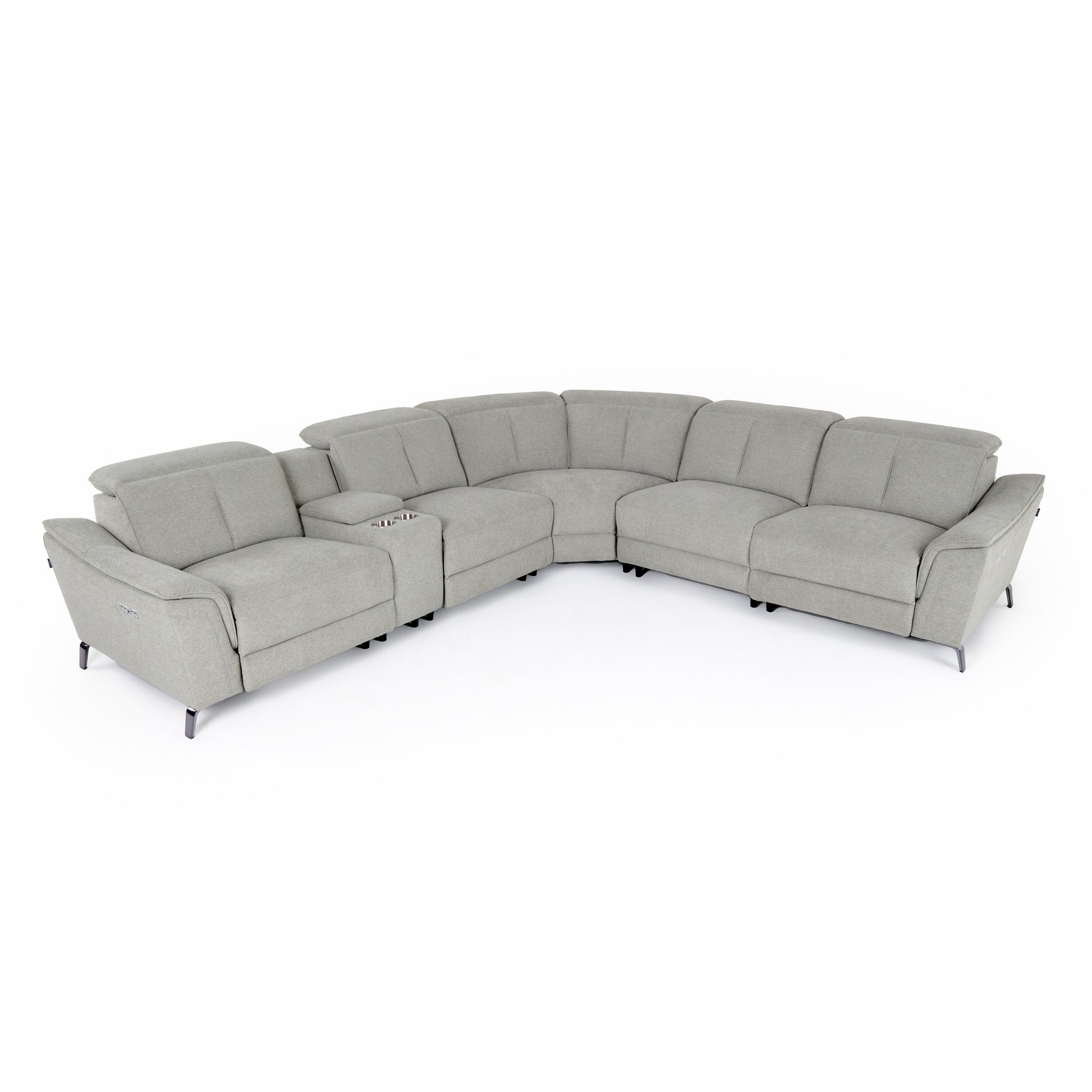 Divani Casa Lloyd - Modern Grey Fabric Sectional with Recliners + Console