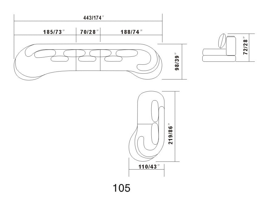 • High gloss wood stained accent ledges and end tables built into the frame of the sofa