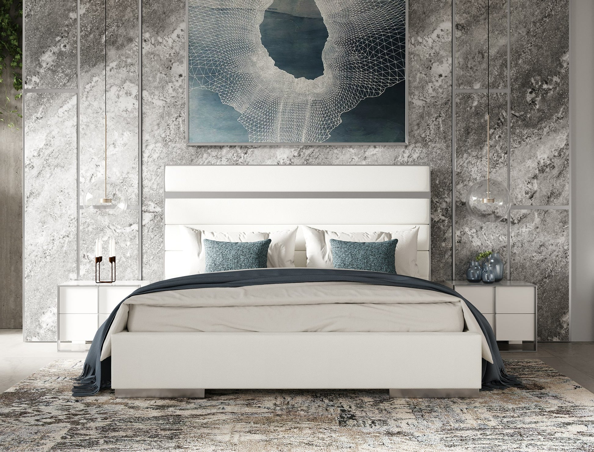 Modrest Cartier - Modern White Vegan Leather + Stainless Steel 4-Piece Bedroom Set