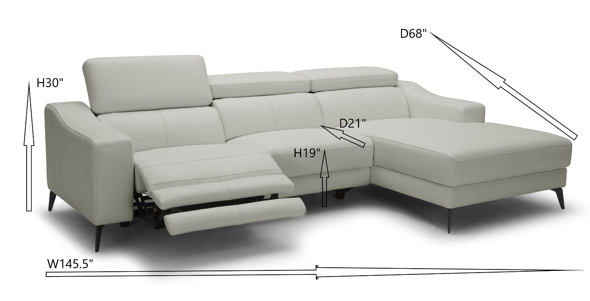 Modrest Rampart - Modern L-Shape RAF White Leather Sectional Sofa with 1 Recliner